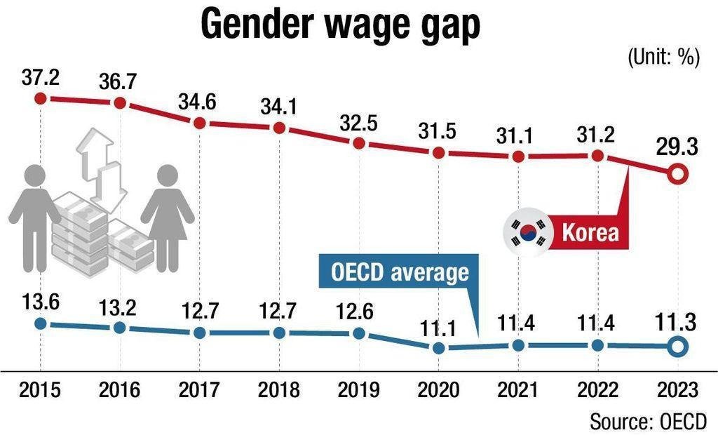 Não é novidade que a Coreia do Sul é o país membro da Organização para a Cooperação e Desenvolvimento Econômico (OCDE) com a maior disparidade salarial entre gêneros. Para a OCDE, essa disparidade é definida e calculada a partir da diferença entre os rendimentos médios de homens e mulheres, em relação aos rendimentos médios dos homens (OECD, Gender Wage Gap).