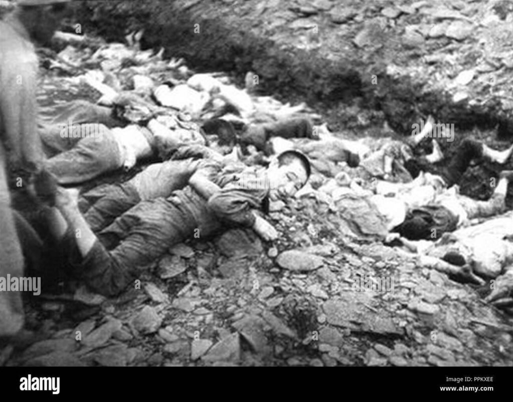 Imagem divulgada pelos Estados Unidos. Fonte:https://c8.alamy.com/comp/PPKXEE/bodo-league-massacre-at-daejon-south-korea-1950-PPKXEE.jpg
