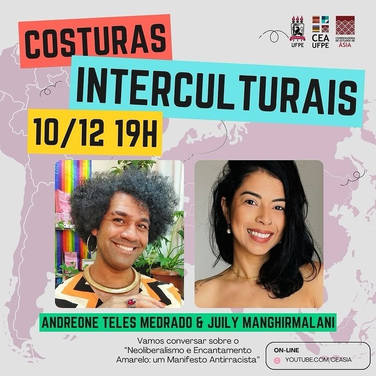 Inaugurando os trabalhos, em 2024 recebemos Andreone Teles Medrado e Juily Manghirmalani para conversar sobre o “Neoliberalismo e Encantamento Amarelo: um Manifesto Antirracista”. Assista: